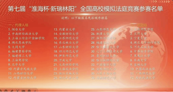 “淮海杯”全国高校模拟法庭竞赛,是国内法学领域极具影响力的赛事之一。本次竞赛由中国法学会法学教育研究会模拟法庭教学专业委员会与江苏师范大学共同主办,湖北民族大学承办,贵州新瑞林阳律师事务所协办,吸引了来自全国48所高校的参赛队伍同台竞技,经过线上初赛、复赛及1/4决赛的层层淘汰,6支高校队伍晋级最终半决赛、决赛阶段。大赛分为代理人组和法官组两个组别,其中,代理人组山西财经大学代表队获得冠军,山东财经大学代表队获得亚军,福建理工大学代表队和河南大学代表队获得季军;法官组黑龙江大学代表队获得冠军,西南政法大学代表队获得亚军,中华女子学院代表队获得季军。